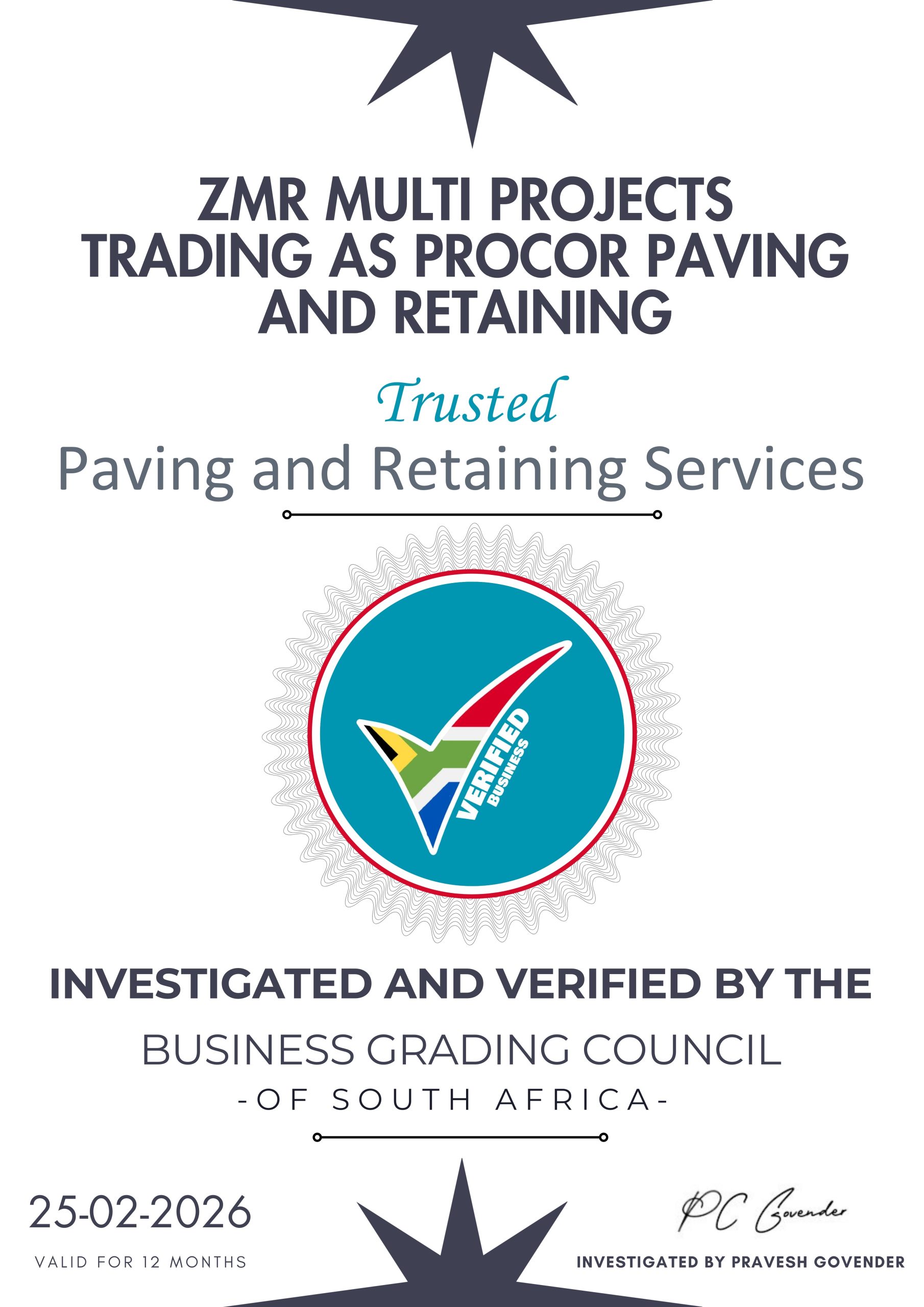 Procor Paving provides professional paving and retaining services trusted by Mobi-cast. We specialise in transforming residential, commercial, and industrial properties with durable, high-quality finishes designed to last for years.